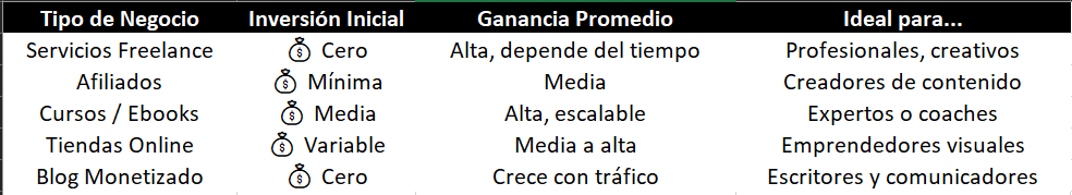 No todos los negocios online ganan igual. Elegí el modelo que más se adapte a tu perfil: